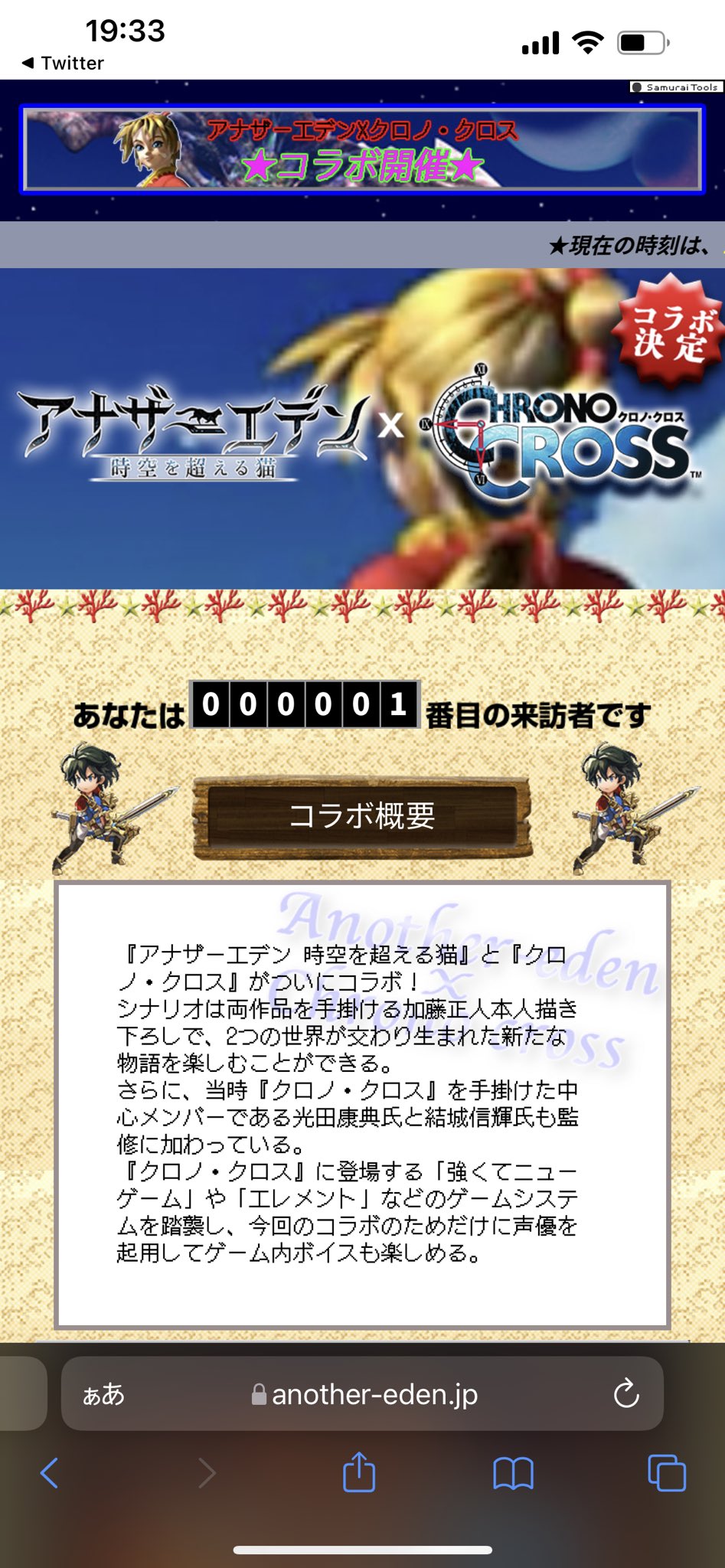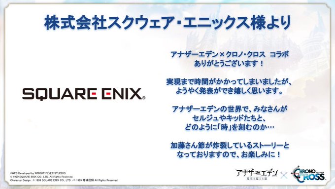 【#アナザーエデン コラボ発表生放送 速報1】