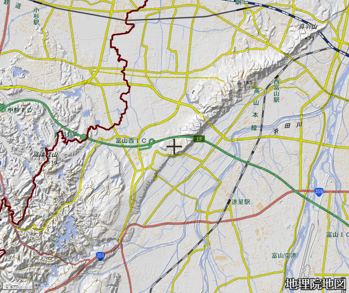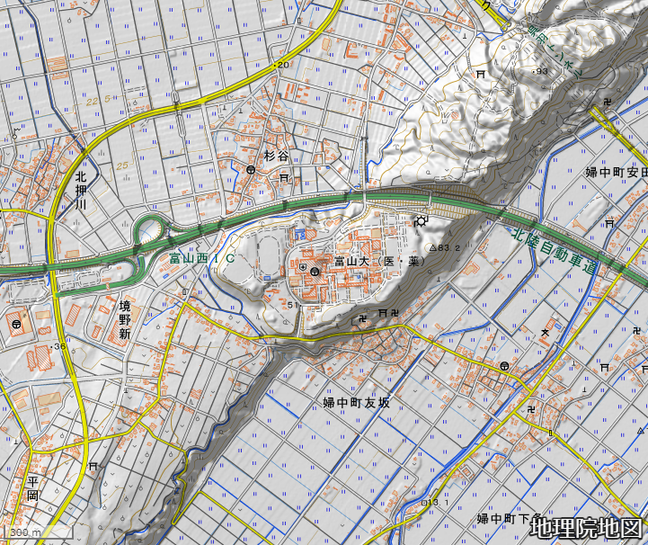 #ブラタモリ で薬都と紹介された富山には、国立大学附置研究所で国内唯一の薬学系研究所である富山大学和漢医薬学総合研究所があります。建っている場所は呉羽山に続く断層地形の上でした。 #地理 #地図 pic.twitter.com/rTMMHD38Jh
