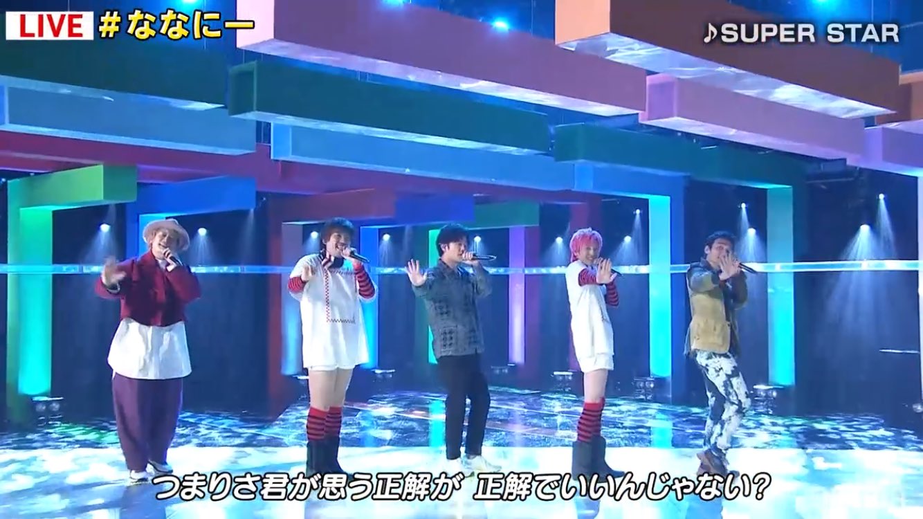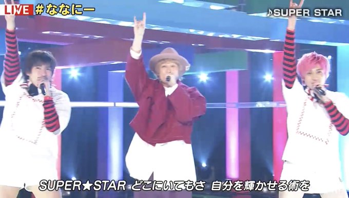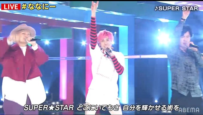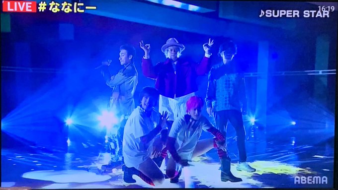 SUPER STARって、SMAPが歌いそうな雰囲気の楽曲だなぁ〜✨EXITもリスペクトしてくれてるからな😊地図とEXIT素敵な関係性だよな✨5人がSMAPに見えたよ😭 #ななにー #新しい地図 #EXIT pic.twitter.com/BncjfwtqtH
