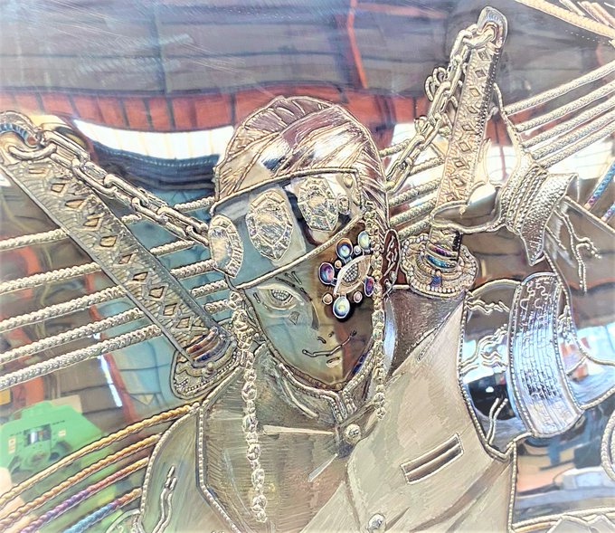 宇髄天元をイメージした特別ライティングを点灯します。金、銀、青がきらびやかに輝くド派手なライティング。装飾品をイメージした金色がアクセント。