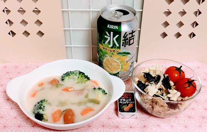 レタサイでシチューと和風サラダ。白菜より甘みがあっておいしい♪ pic.twitter.com/i7sVxLvh9S