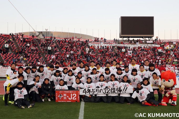 遅ればせながら #ロアッソ熊本 の皆さん、サポーターの皆さん、関係者の皆さん、J3優勝&J2昇格本当におめでとうございます㊗️👑