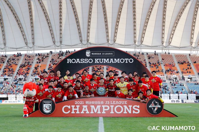 #ロアッソ熊本 は2021シーズンを15勝9分4敗の結果をもって、目標としていた #J3優勝 #J2昇格 を掴み取りました。