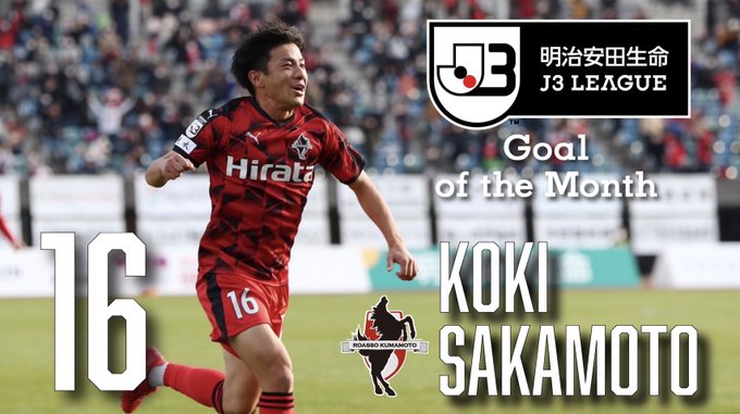 このたび、#ロアッソ熊本 から、2021明治安田生命J3リーグ11・12月度の月間ベストゴールに坂本亘基選手による第30節(12/5FC岐阜戦)65分のゴールが選出されましたので、お知らせいたします。