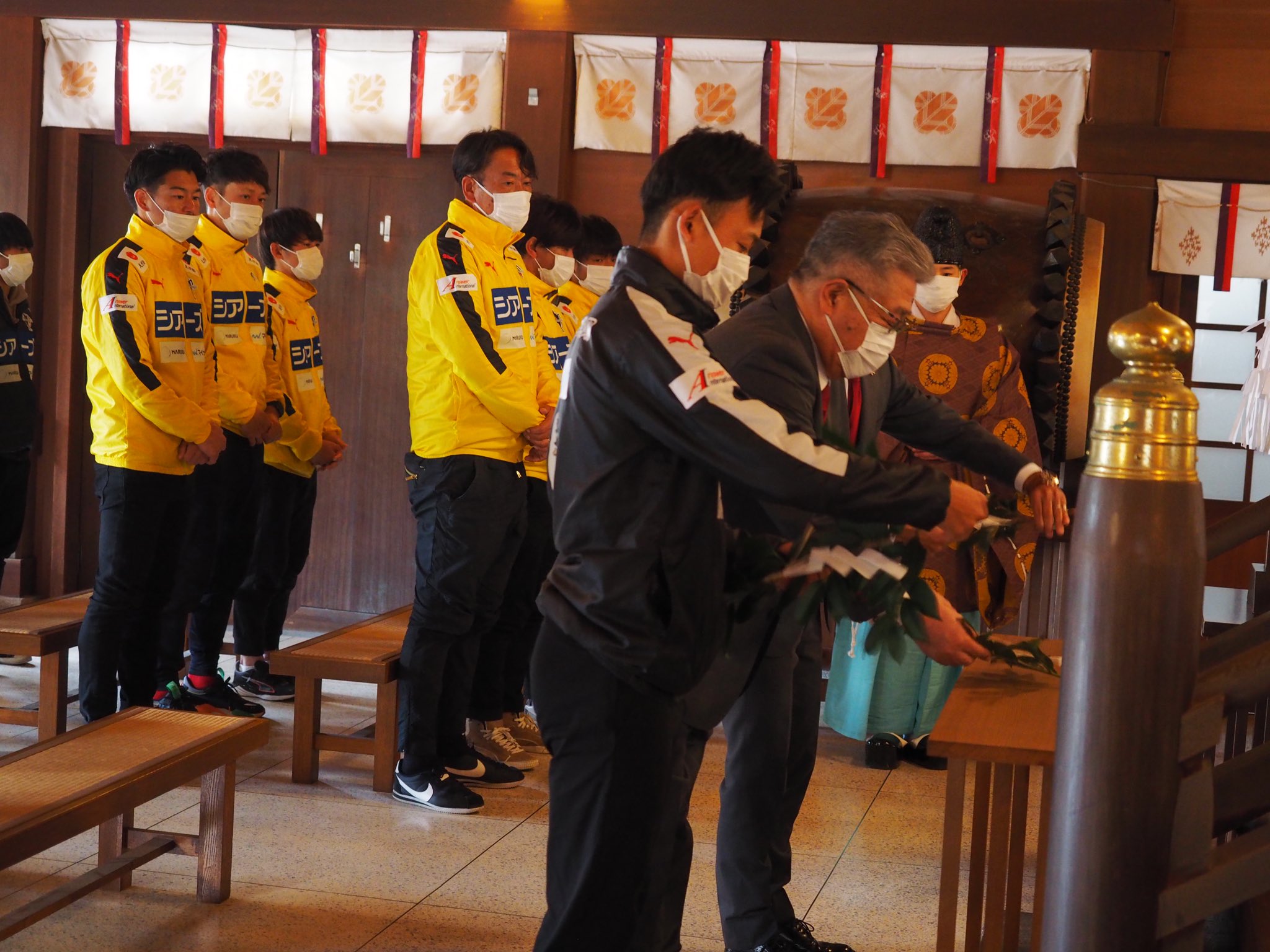 昨日の優勝から一夜明け、本日12/6(月)はシーズン前に必勝祈願を行いました健軍神社で御礼参りを行いました。
