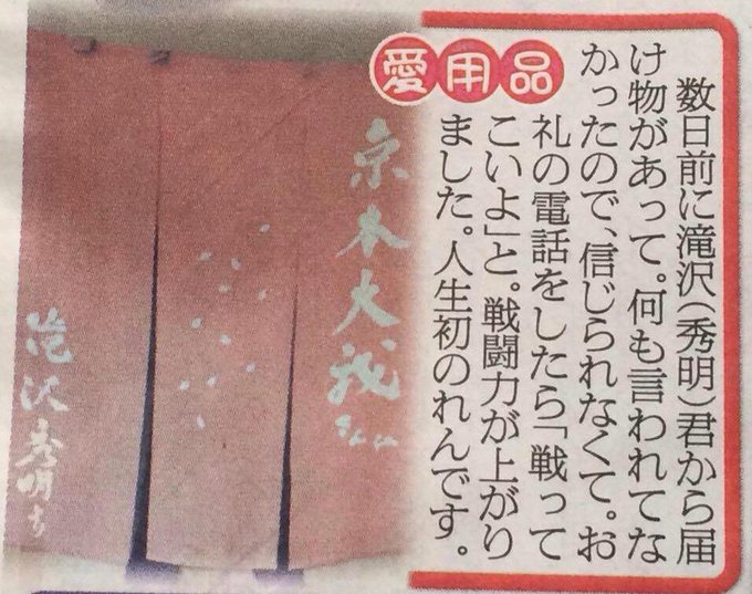 『滝沢は京本に自分の物と同じ色の楽屋ののれんを贈ったという』