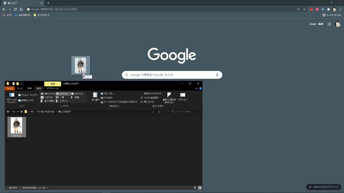HDD内に保存した画像をGoogleの検索画面にドロップすると、右クリックから"Googleで画像を検索"することができるよ~