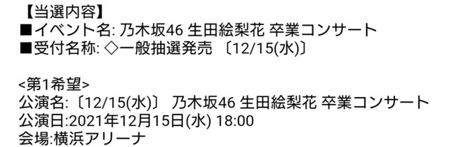 卒業コンサート行けることになりました。しかも15日の千秋楽です。10年乃木坂を見続けてきた思いが報われた様な気がして正直手が震えています。"乃木坂46生田絵梨花"の歩みの集大成を横浜アリーナと言う舞台で見られることに感謝し、しっかりと見届けて来ます。