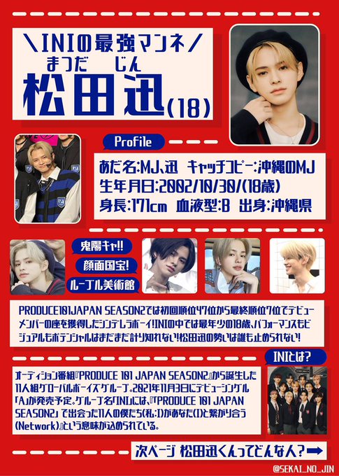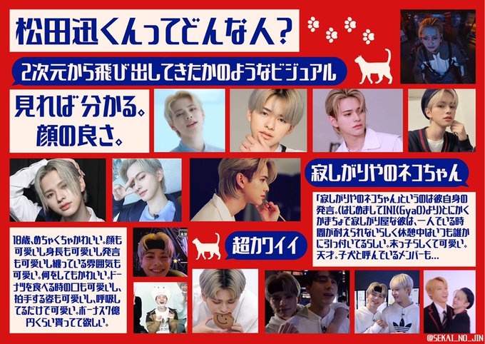 FNS歌謡祭の放送中に流れた #米肌 のCMに出てきた髪の毛が明るい&白い男の子は #INI のかわちい末っ子ネコちゃん #松田迅 くん19歳です‼️いつも元気で笑顔でダンスが上手でお顔が良いです‼️全人類好きになってください‼️ #ダブルでオトします #肌潤モイスチャーインWクレンズ @official__INI pic.twitter.com/vlc5nAf3Fk