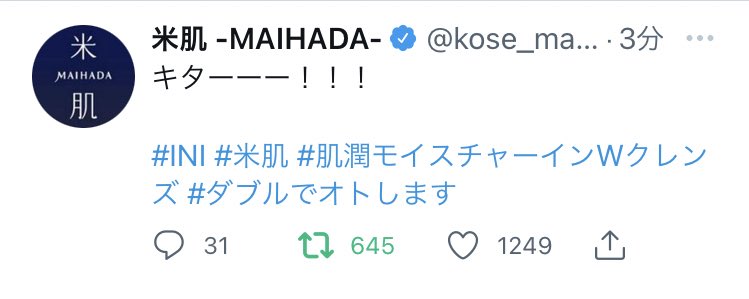 #INI #米肌 #MINI #ダブルでオトします #肌潤モイスチャーインWクレンズ @official__INI pic.twitter.com/Jz7JNv0bVN