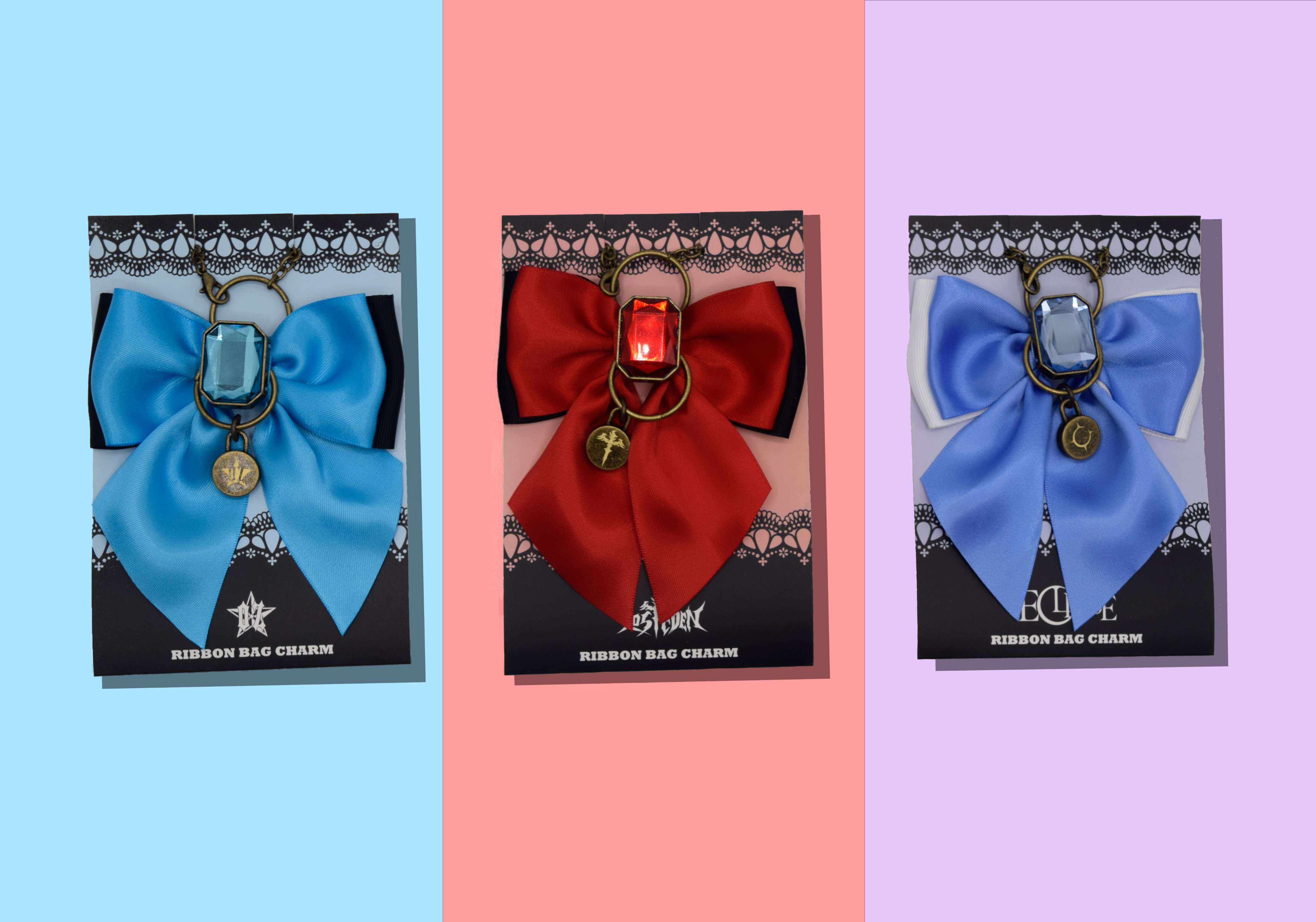 ユニットカラーのビジューがキラリと光るリボンバッグチャーム。落ちにくいチェーンタイプで色々なバッグに合わせられます🎀