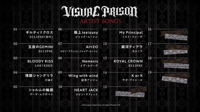 ヴィジュアルプリズン主題歌・挿入歌CD「残酷シャングリラ/BLOODY KISS/玉座のGEMINI」好評発売中です!