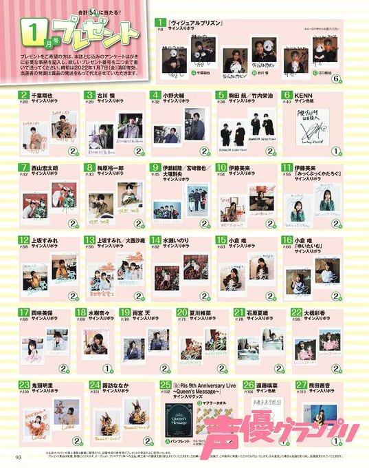 『ヴィジュアルプリズン』より #千葉翔也 さん、 #古川慎 さん、 #江口拓也 さんサイン入りポラなど合計54名様に当たる声グラ1月号読者プレゼントの応募締切は1月7日(金)当日消印有効です💌皆様からのご応募お待ちしております🎁プレゼント詳細はコチラ▼
