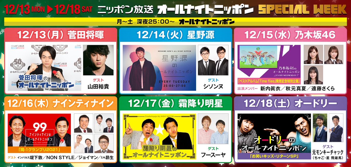 このあと25時からはオードリーのオールナイトニッポンです。