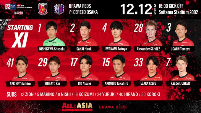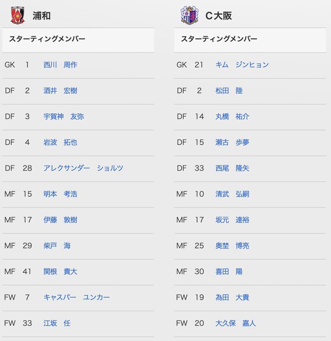 浦和vsC大阪のスタメンはこちら💁♀️