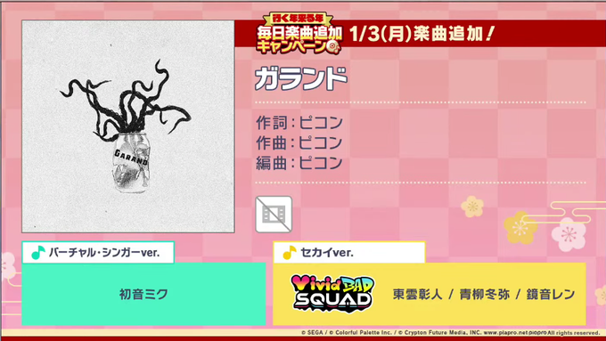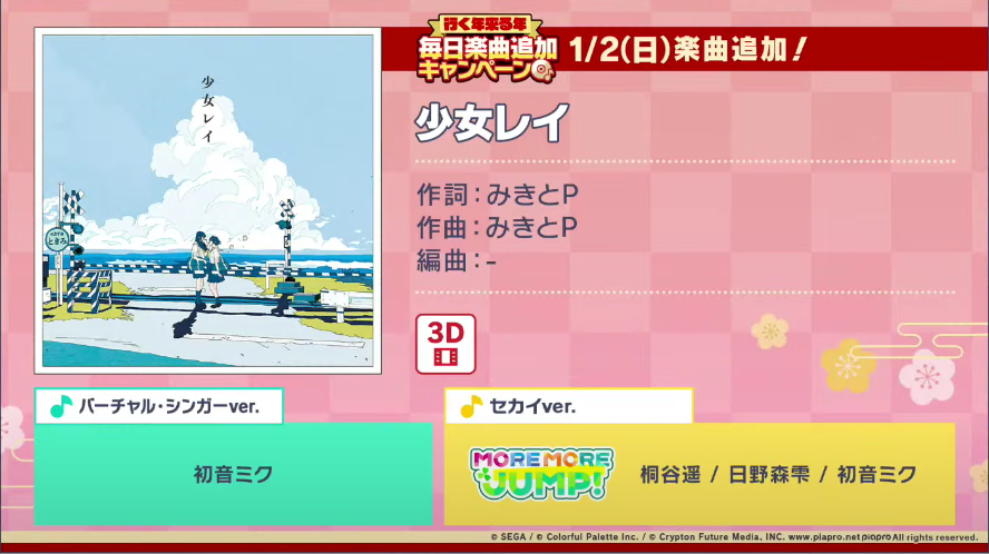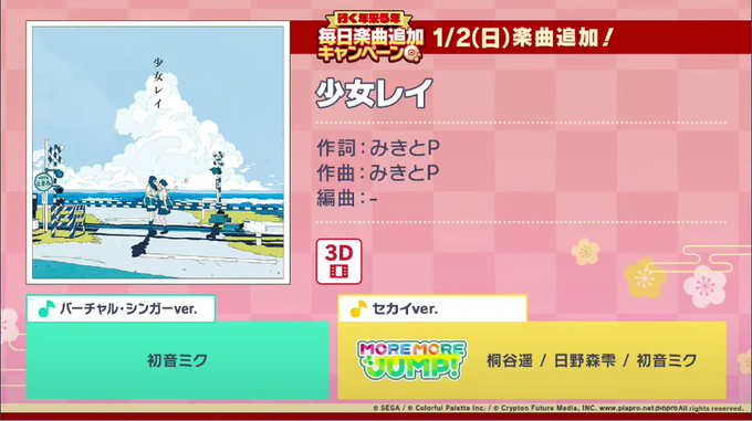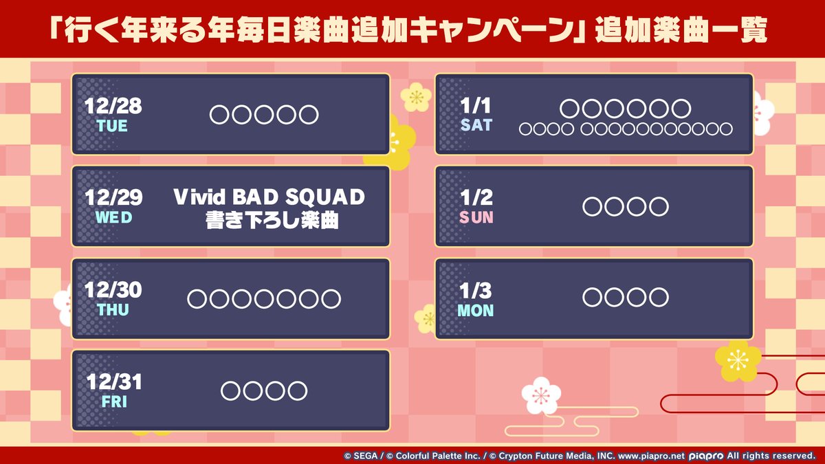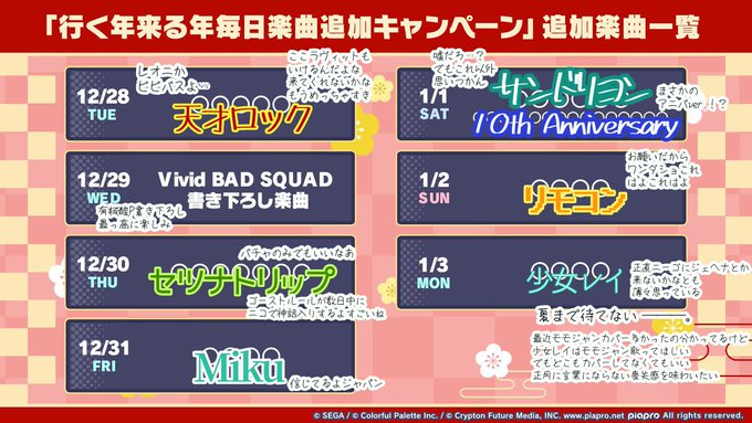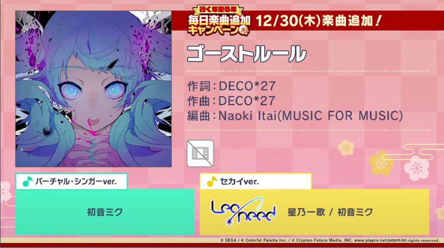 今年の年末年始の楽曲追加キャンペーンが発表されましたね!