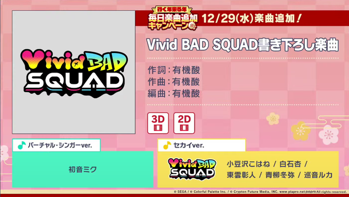 12/29「ビビバス書き下ろし楽曲」(詳細は後日)