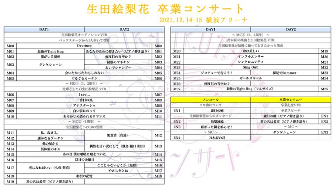 乃木坂46生田絵梨花さん卒業コンサートのセットリストです。
