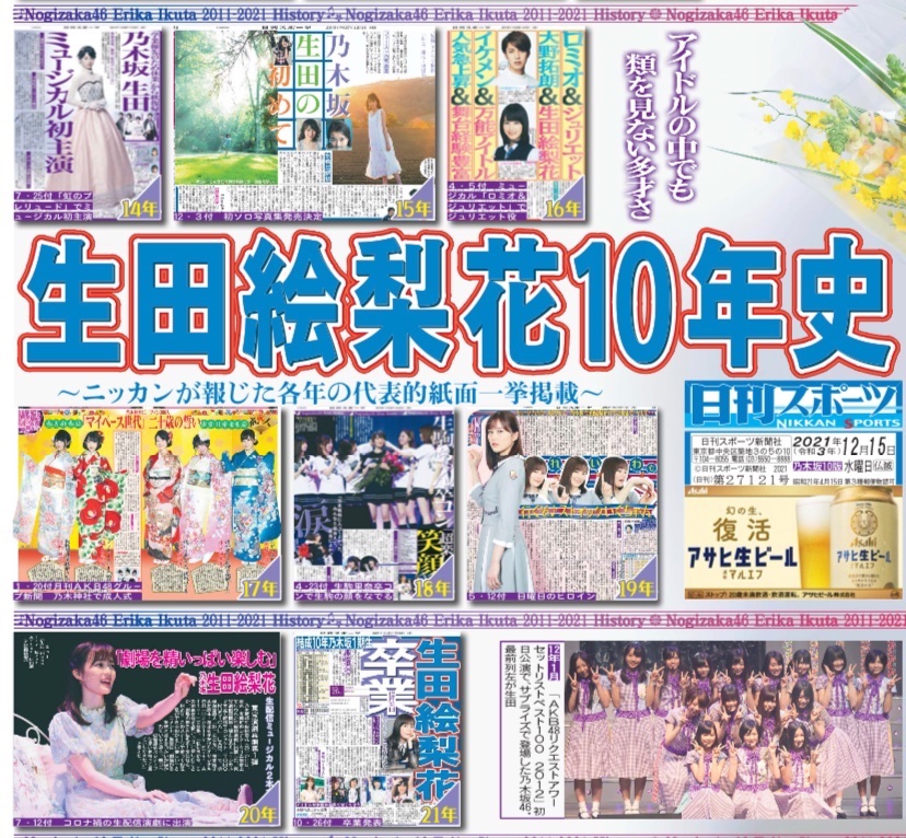 日刊スポーツでは、乃木坂46生田絵梨花さんの卒業コンサートやインタビューなどを大特集した特別版を12月14〜16日の3日間制作。永久保存版の3部セットをAmazonで販売、予約開始いたします!