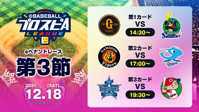 明日12/18(土)はセ・リーグの熱戦の模様をパワプロ・プロスピ公式チャンネルでLIVE配信!