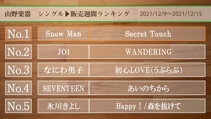 12/14付オリコンデイリーシングルランキング1位おめでとうございます👏🏻