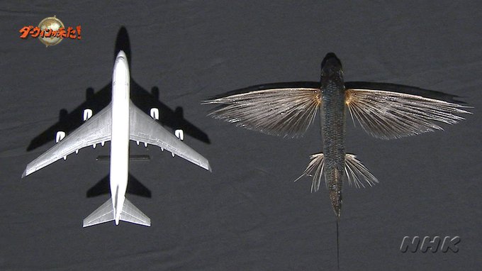 ちなみに、ライト兄弟がトビウオを参考に飛行機を設計したかどうかはわかりませんが、飛行機とトビウオの形は驚くほど似ています。
