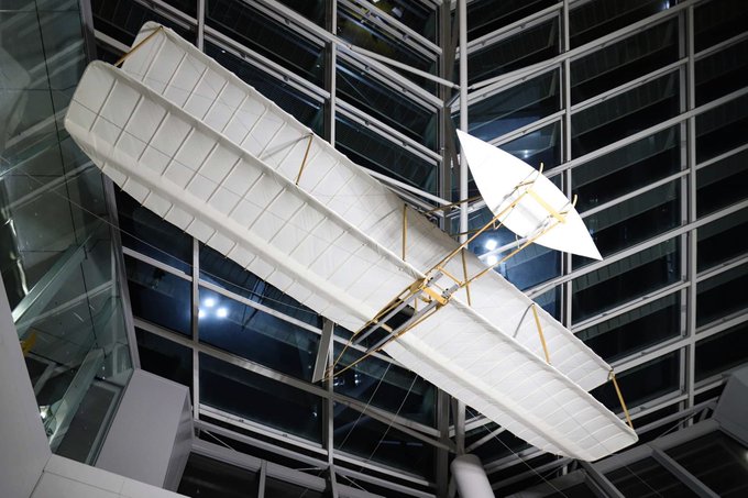 スカイデッキは強風の為閉鎖中でした🌀代わりに入口付近に展示されているライト兄弟の1902年製グライダーをお届け📷️実は今日はライト兄弟が動力飛行機での初飛行に成功した #飛行機の日 ですよ🛫明るく照らされた白い翼が美しいですね(^^)今週もお疲れ様でした! pic.twitter.com/srCyCfskpc