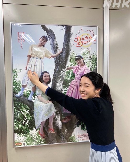 #あさイチ 出演の #上白石萌音 さんオフショット。ポスターをみつけて、るいちゃん、ひなたちゃんを思わずハグです。