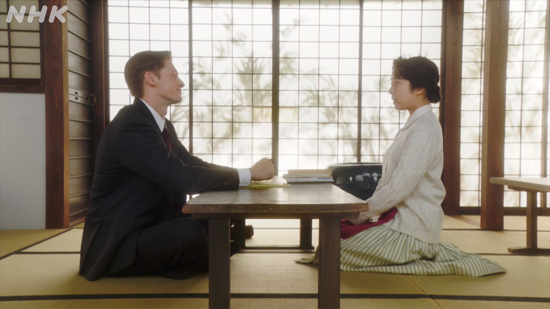 紳士淑女。安子とロバートの、人間として尊重しあったおつきあい。昨夜の木漏れ日のステップといいアバンの名前の呼び合いといい、微笑ましいが「安子が世間からどう見られているか」を雪衣さんがつきつけたので、不安でざわざわくる