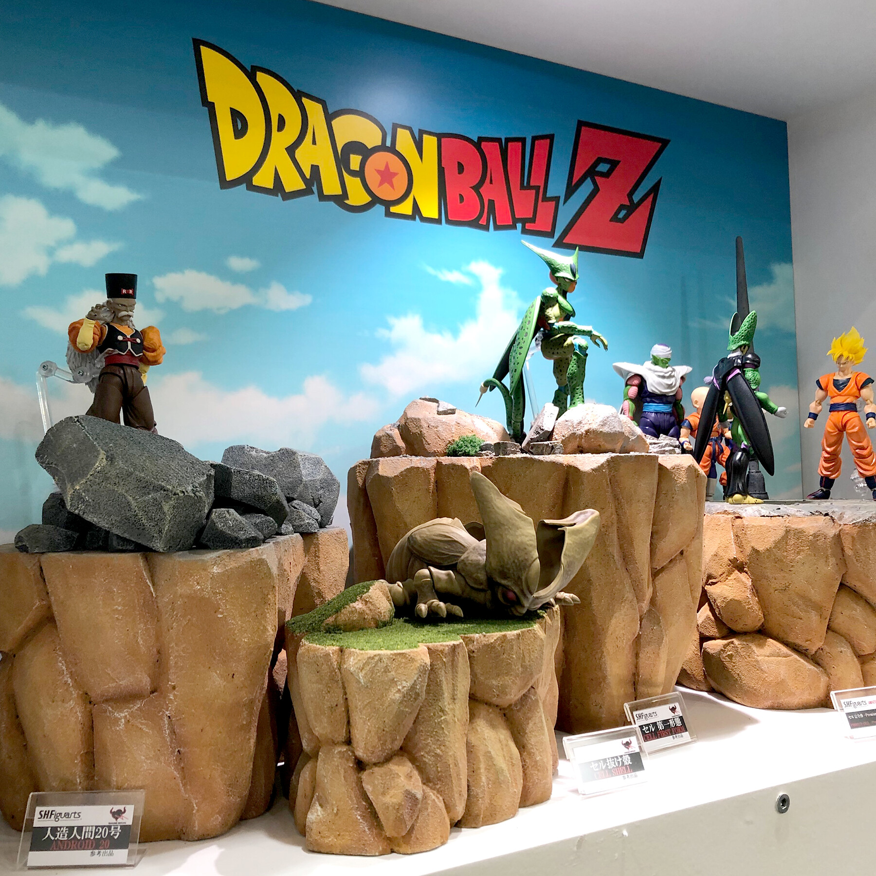 『 #ドラゴンボール 』ブースのS.H.Figuartsラインナップ展示、セル編コーナーでは人造人間20号、セル 第一形態、セル(抜け殻)の参考出品も!