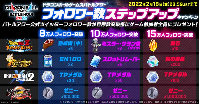 フォロワー数に応じて『ドラゴンボール』の様々なゲーム内で使えるアイテムをプレゼント!まずはフォロワー8万人を目指そう!