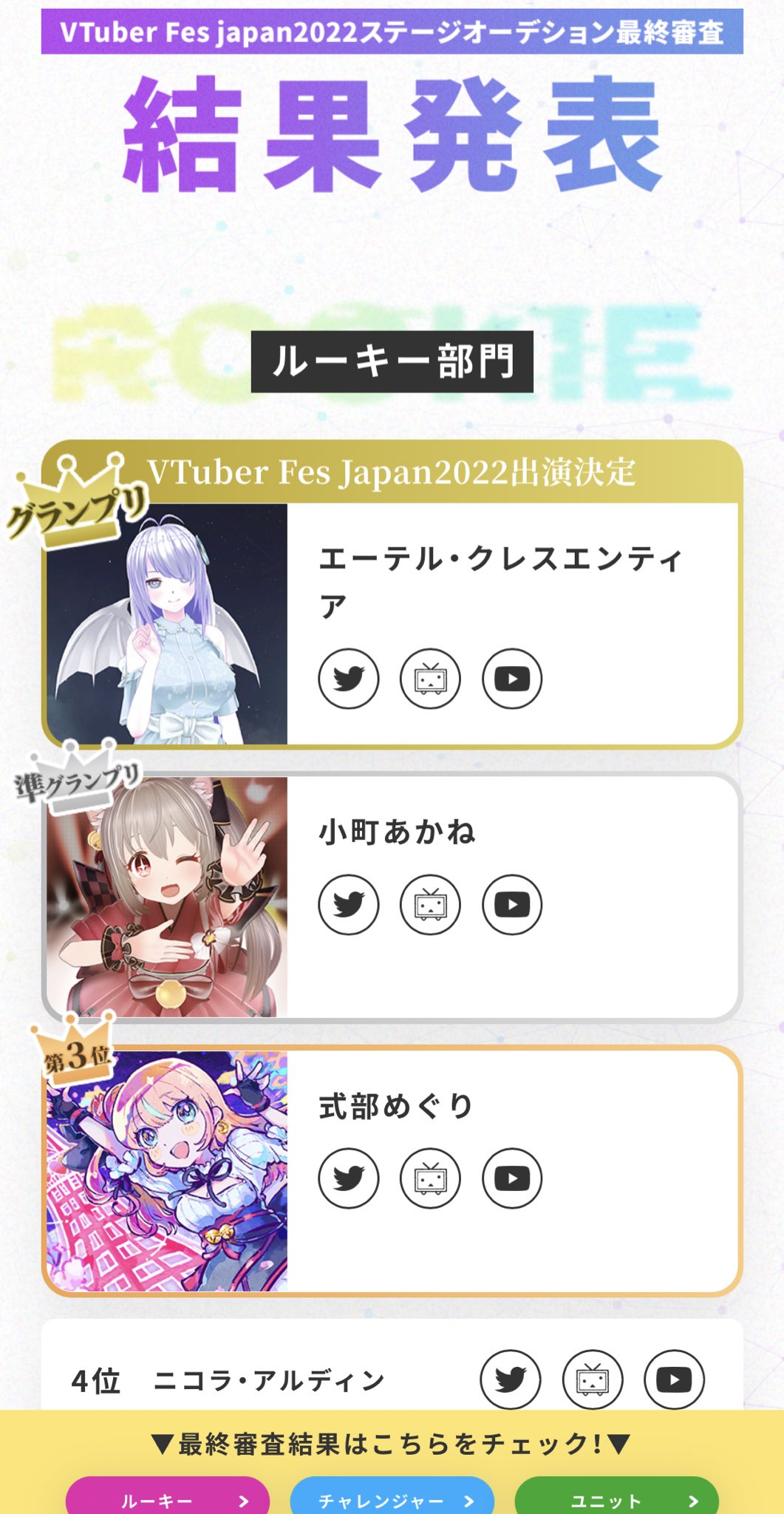 おかげさまで、エーテルが『出ようぜ!VTuber Fes』ステージ出演オーディション2022、ルーキー部門1位をいただきました✨✨✨