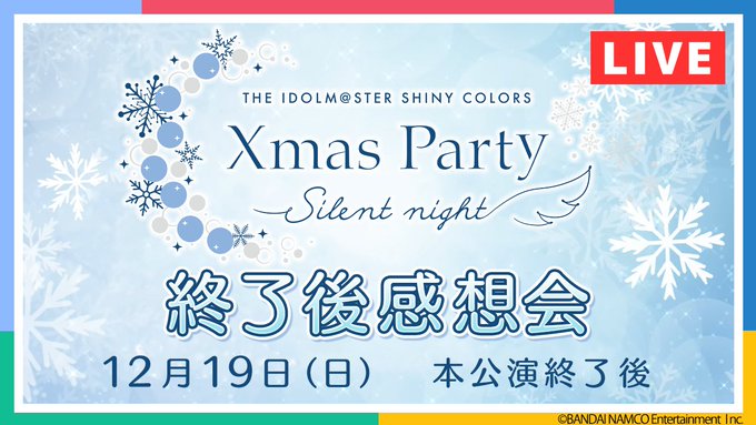 12月19日(日)本公演終了後より、生配信「【シャニマス】Xmas Party -Silent night- 終了後感想会」を行うことが決定しました!