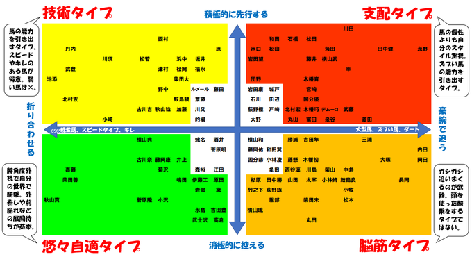長距離は騎手の腕が重要。騎乗スタイルマトリクスと併せて参考にしてもらえればと思います。 pic.twitter.com/GWsrJZHiCd