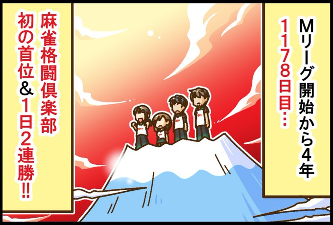 KONAMI麻雀格闘倶楽部、4年目の折り返し地点でついに念願の首位到達!! このままの勢いでめざすは優勝のみ…!!【 #Mリーグほぼ毎日4コマ 】 #藤島じゅん /VOL.222