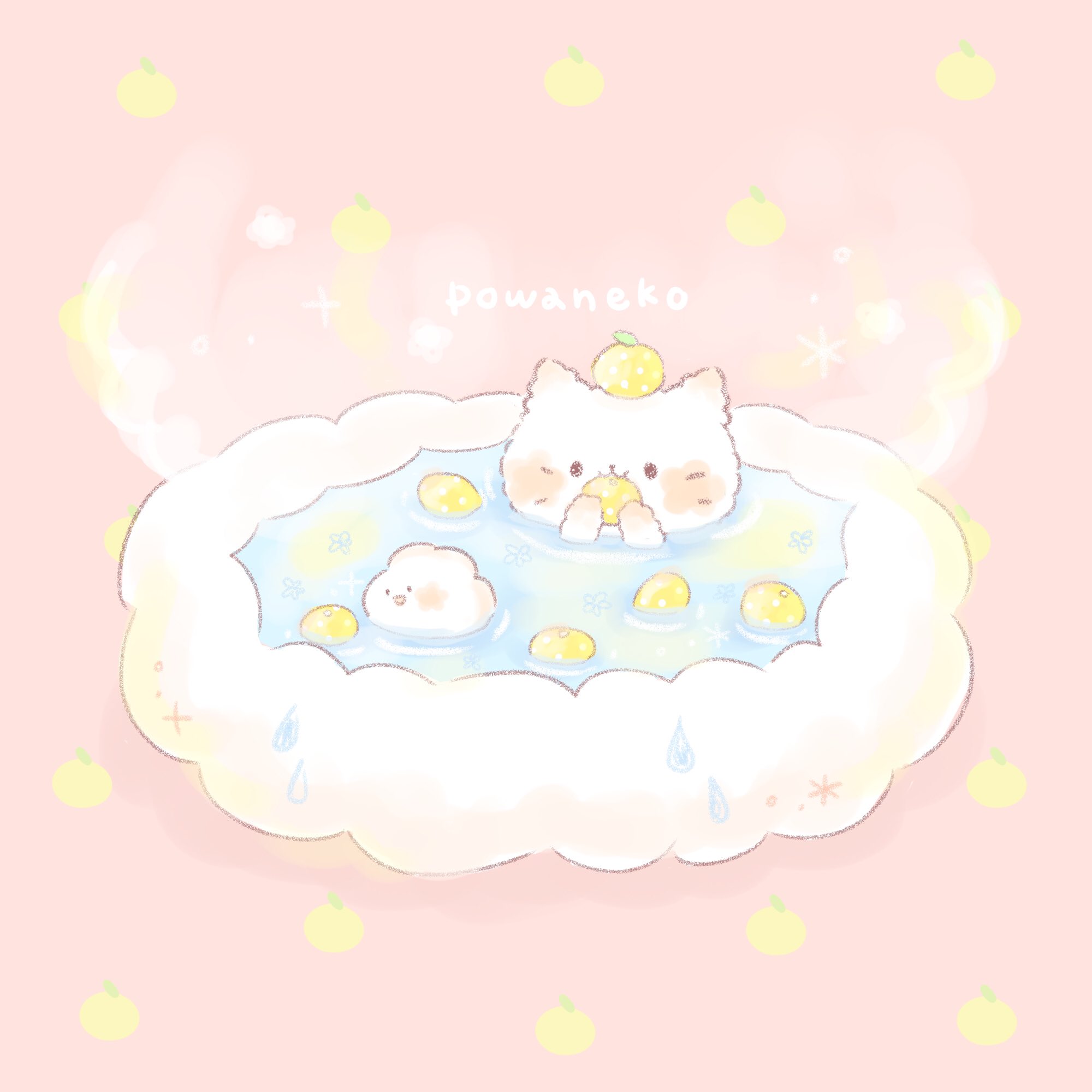 柚子湯に入ってあったまろうにゃ🍊