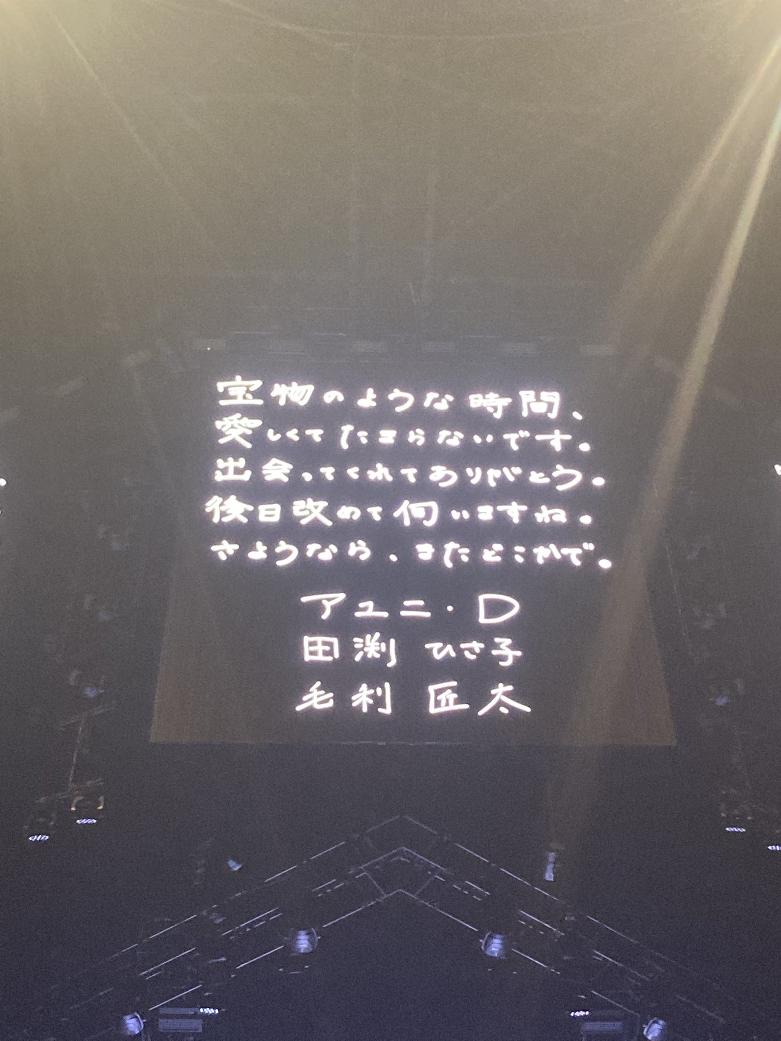 泣かない様に我慢して外に出て横浜アリの文字のライトが消えて、もう最後なんだって思ったら急に涙腺が緩みました