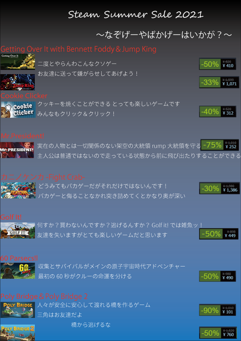 『Steamウィンターセールおススメゲーム48選』