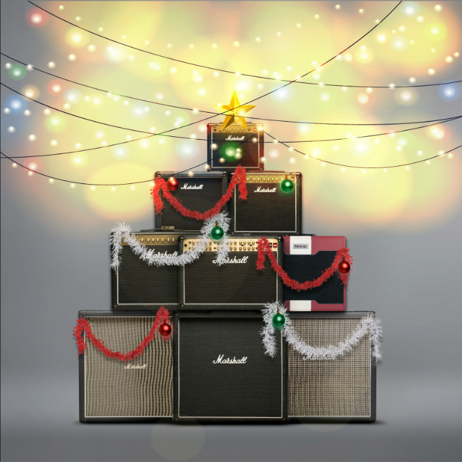 Marshallアンプを積み上げてクリスマスツリーが完成🎄