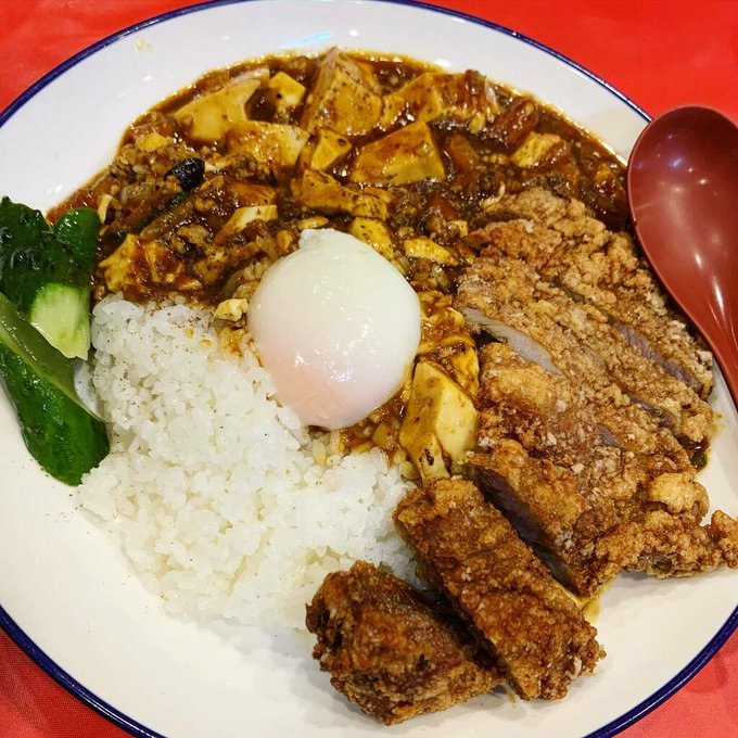 #麻婆カレー飯排骨乗せ。