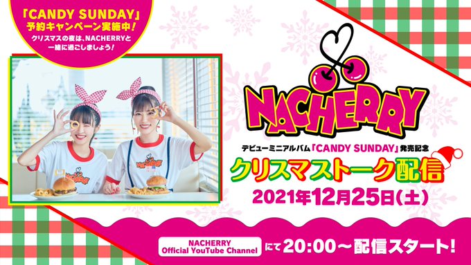 本日は #NACHERRY デビューミニアルバム「CANDY SUNDAY」の発売を記念して、YouTubeにてクリスマストーク配信します🎄🍒