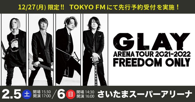 #GLAY 2月のさいたまスーパーアリーナ公演の特別先行抽選予約を #TOKYOFM にて実施します♬