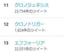 トレンドでクロノジェネシスとエフフォーリアに挟まれて、まるで競馬馬みたいな並び方をしているクロノトリガー #RTAinJapan pic.twitter.com/i5s7dBDJFj