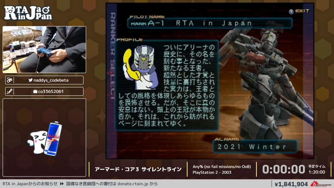 【RTA in Japan Winter 2021】進行中。