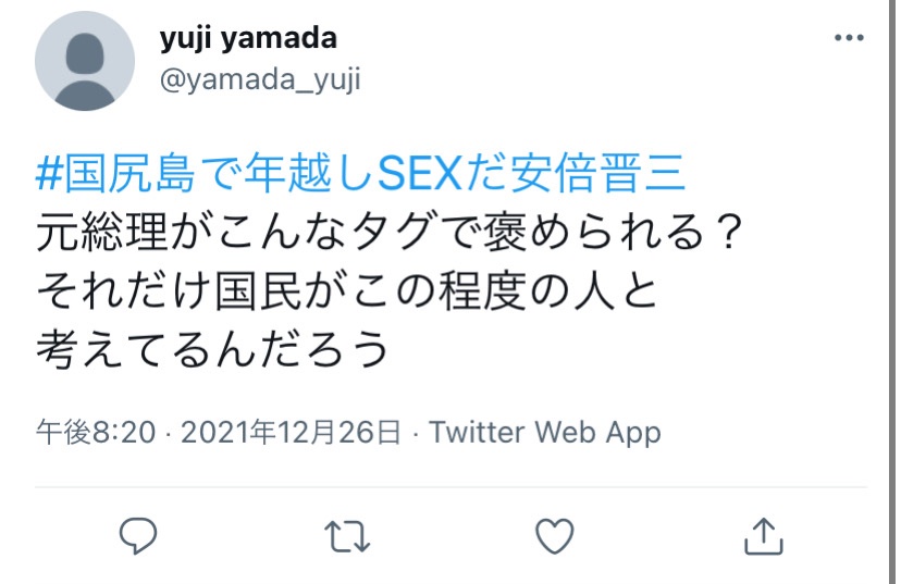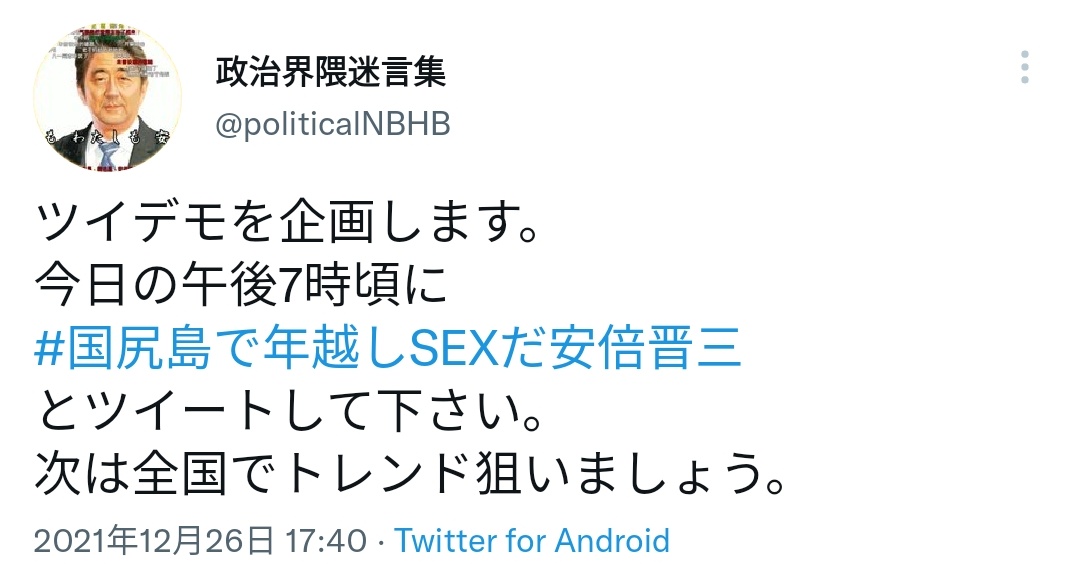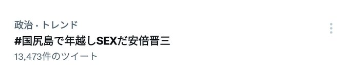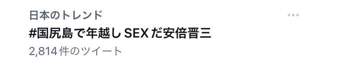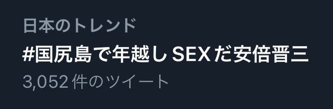「#国尻島で年越しSEXだ安倍晋三」という謎のハッシュタグをトレンドに入れる活動が始まる