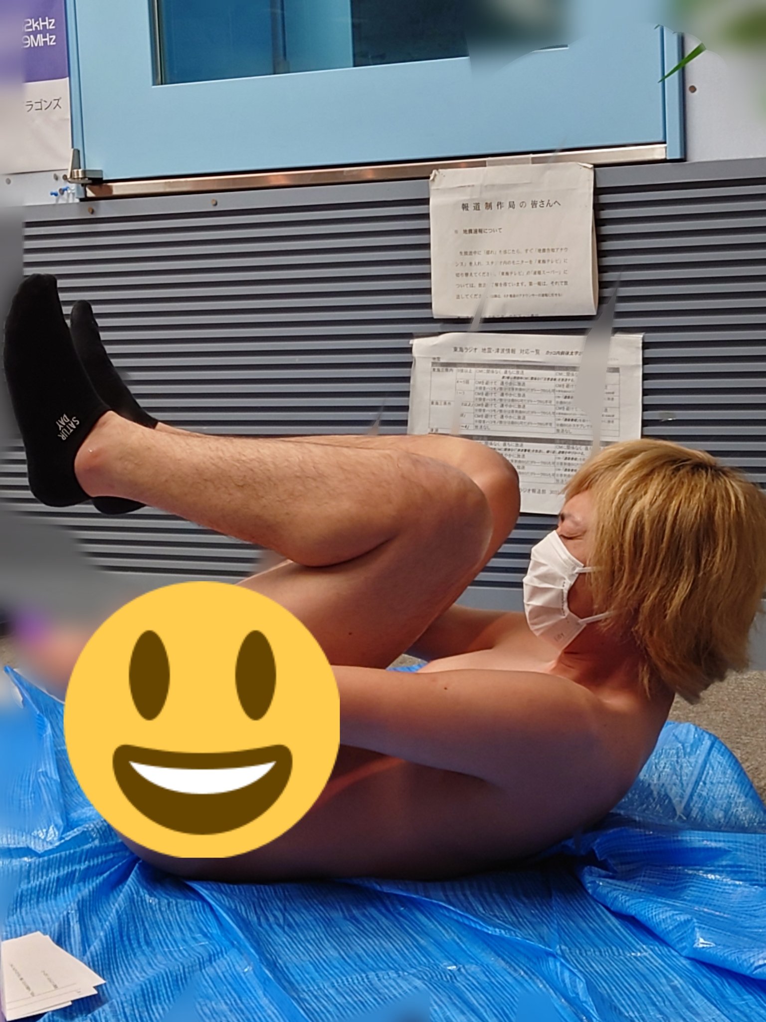 てつやさんがアナ○ビーズ、低周波治療器を装着して放送中です。