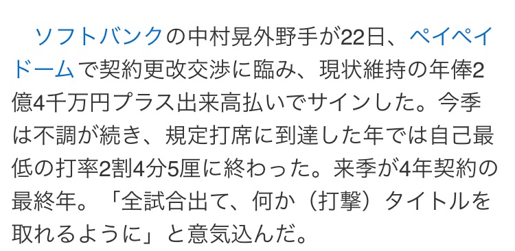 今中村晃の人的補償の噂が流れていますが、中日にこんな大金が払えるはずがございません。