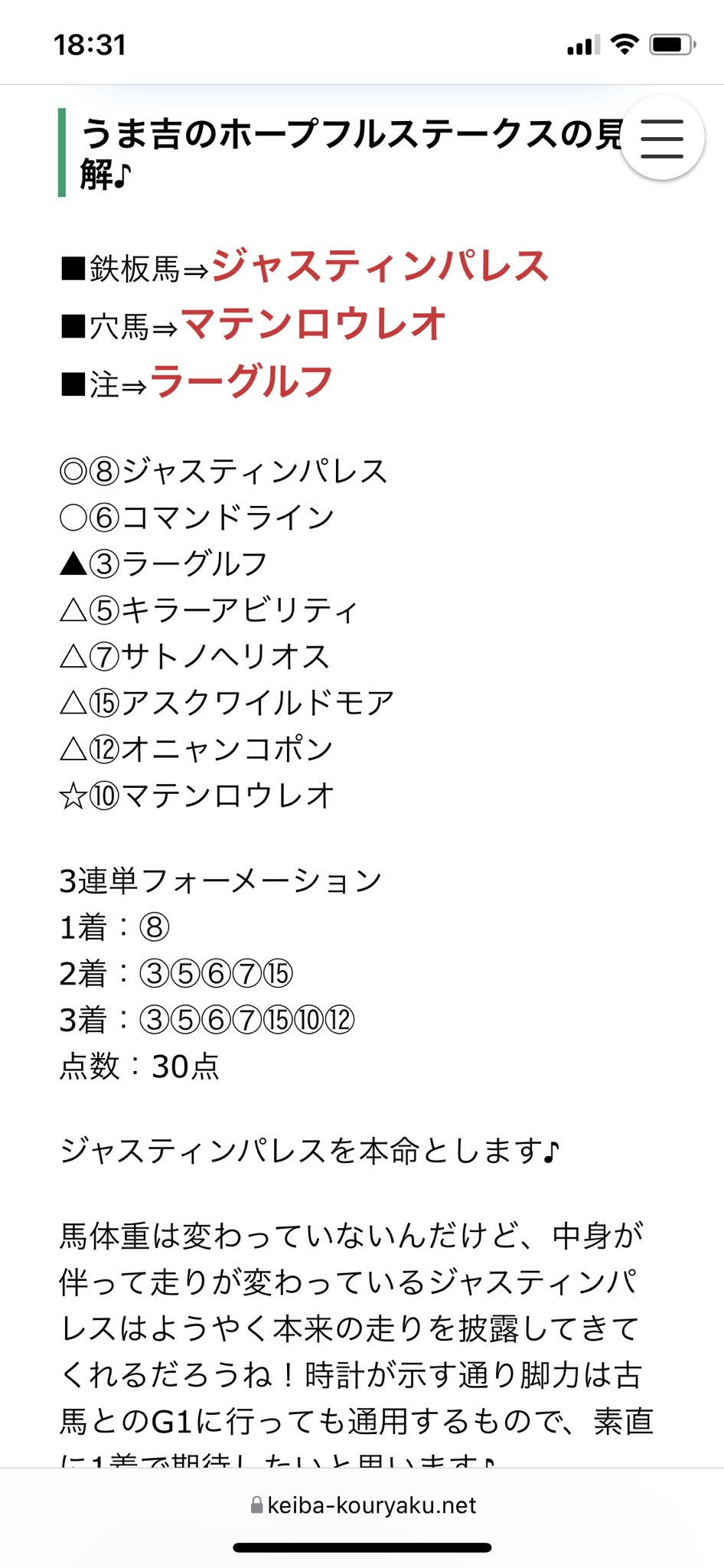 ホープフルステークスは有料noteにだしたからな