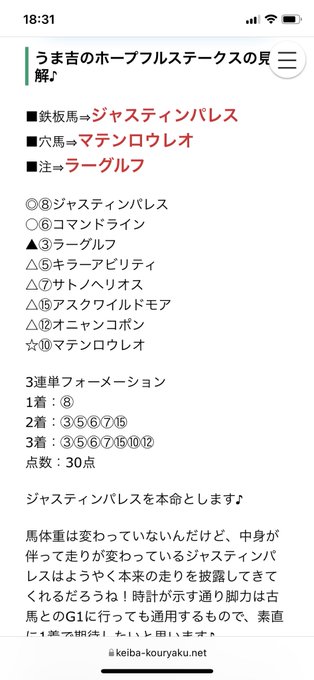 #競馬 #keiba #ホープフルS pic.twitter.com/ghoMGizOjR