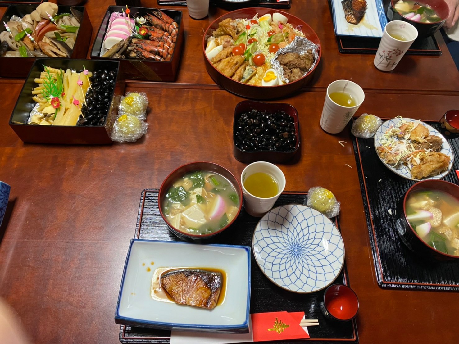 本年もよろしくお願いいたします。元旦は近くの神社へお参りし主人の実家で義母、義姉、娘、私でお節作りをしたものやお雑煮をみんなで食べるのが恒例行事です。